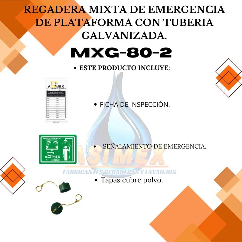 El modelo MXG-80-2 es una regadera mixta fabricada en acero galvanizado cédula 40, ideal para ambientes con alta exposición a agentes corrosivos.