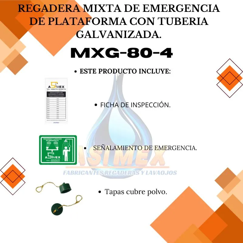 El modelo MXG-80-4 es una regadera mixta fabricada en acero galvanizado cédula 40, ideal para ambientes con alta exposición a agentes corrosivos.
