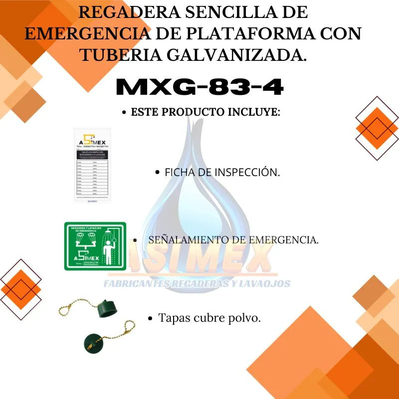 El modelo MXG-83-4 es una regadera mixta fabricada en acero galvanizado cédula 40, ideal para ambientes con alta exposición a agentes corrosivos.